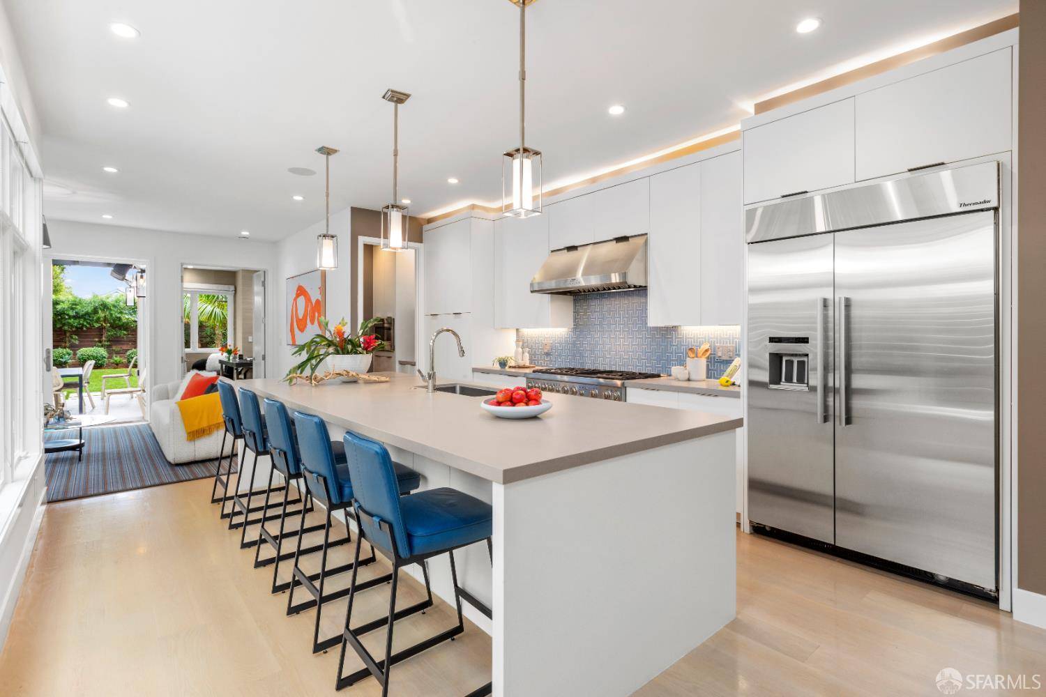 At the crossroads of Fillmore's vibrant culture and Lafayette Park's peaceful charm, this fully reimagined c.1890 Victorian is understated glam, blending classic architecture and modern intelligence. Spanning 4,000+/- sq ft, the home was completely rebuilt in 2015 with all new systems: foundation, roof, electrical, plumbing, plus features a 12-zone Sonos sound system for seamless audio inside and out. Inside, an open concept layout flows from gracious living/dining rooms to a chef-worthy kitchen with a 5-person island, ideal for hosting, quiet mornings, or kids doing homework. The adjacent family room opens to a flat, south-facing garden with built-in BBQ and lush landscaping. The primary suite is private and quiet with a luxe Waterworks bath, enviably sized walk-in closet, a swanky office/den/lounge for hosting friends/colleagues, and a spacious sunny deck with fire pit and seating. Three of five bedrooms are en-suite, there are two laundry centers, a media room for immersive viewing, and a two-car garage with EV charging. Whether you're drawn to the elegance of Victorians or the ease of smart living, chasing kids or your next round of funding, this residence offers both, just steps from Fillmore's boutiques, Lafayette Park's serenity, and remarkably easy access to Downtown.